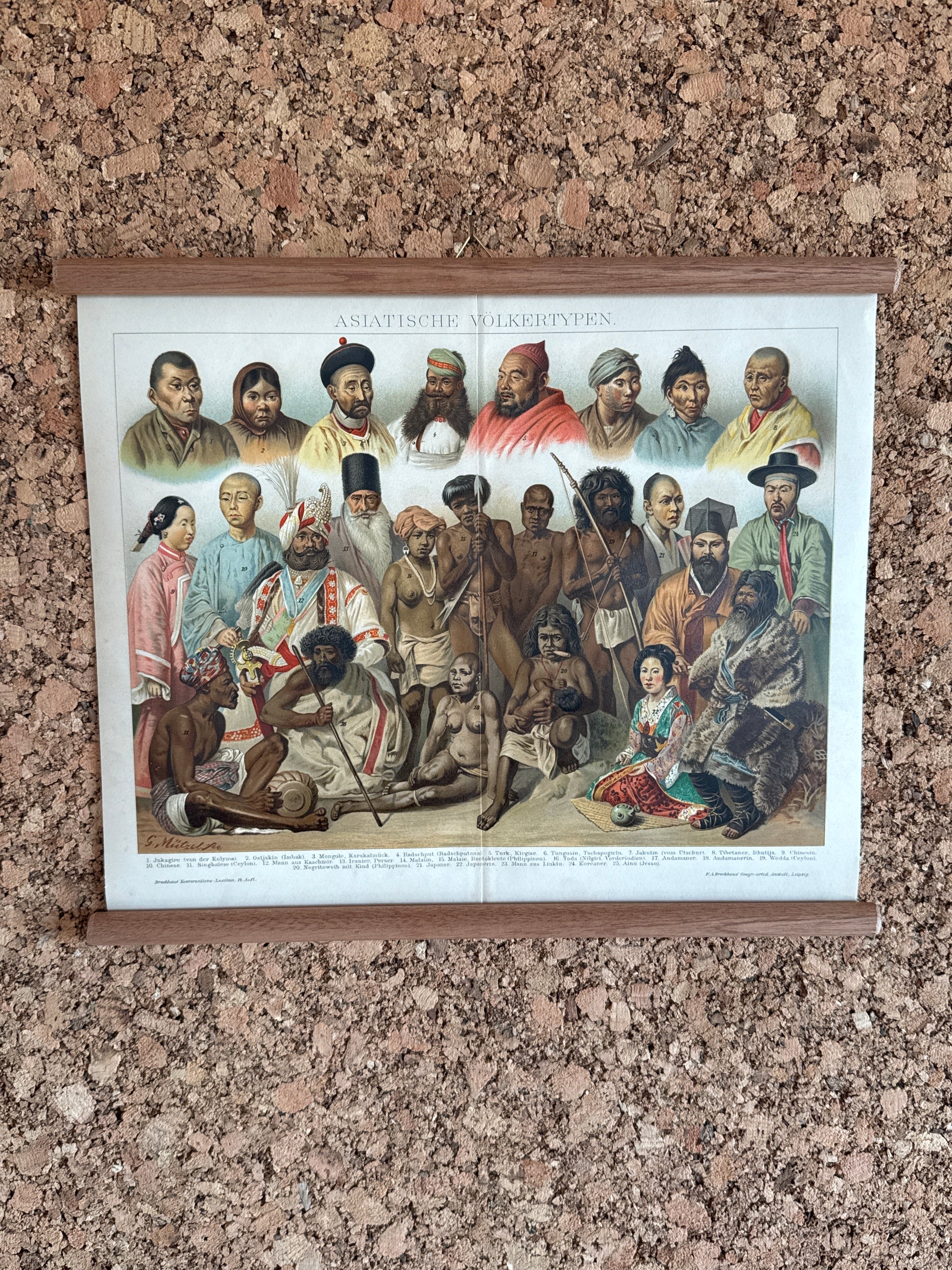 Ældre planche nænsomt frigjort fra sin oprindelige plads i leksikon, dobbeltforstærket med lærredsstof og monteret på nye mahognirundstokke.
