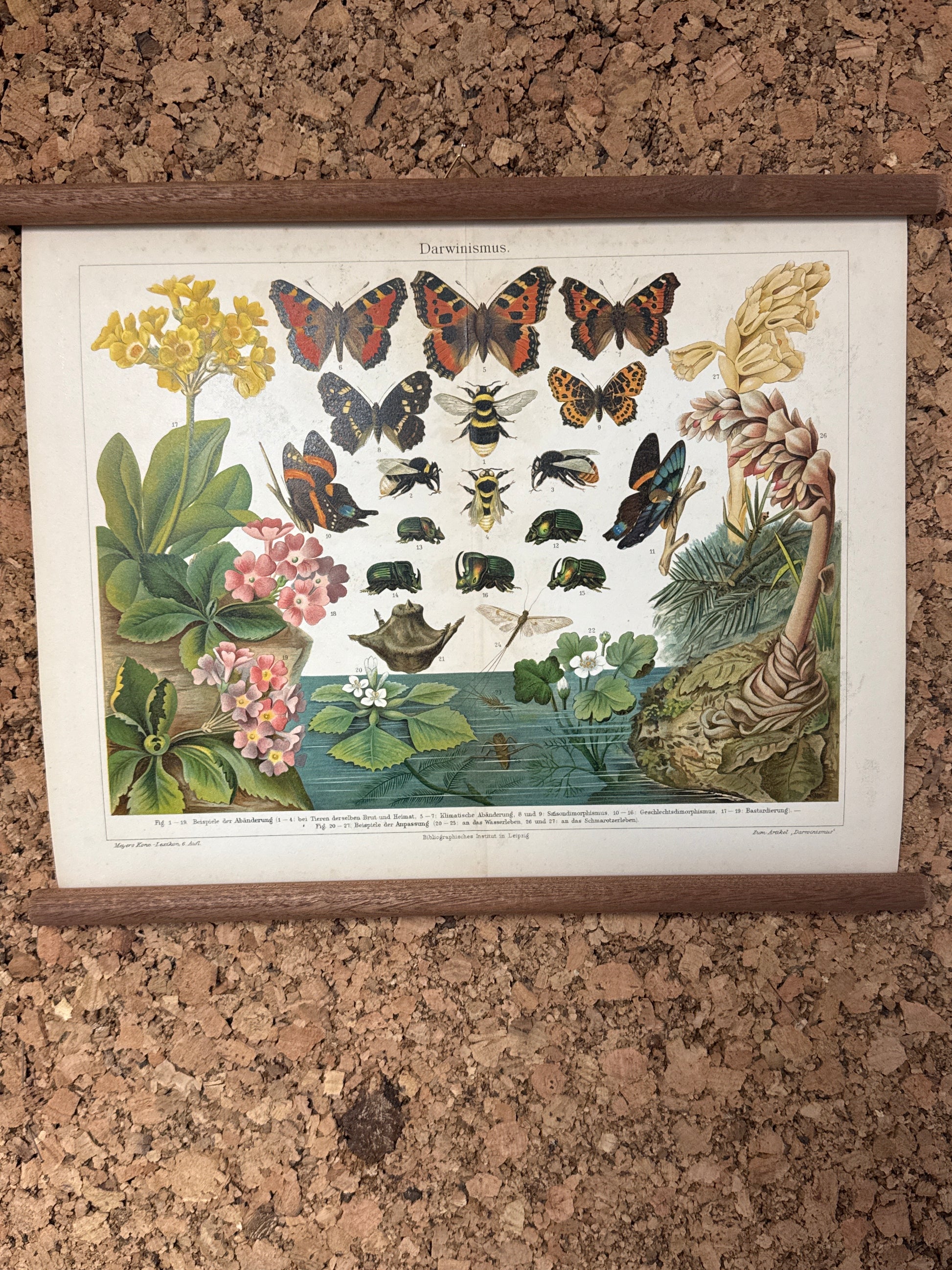 Ældre planche nænsomt frigjort fra sin oprindelige plads i leksikon, dobbeltforstærket med lærredsstof og monteret på nye mahognirundstokke.
