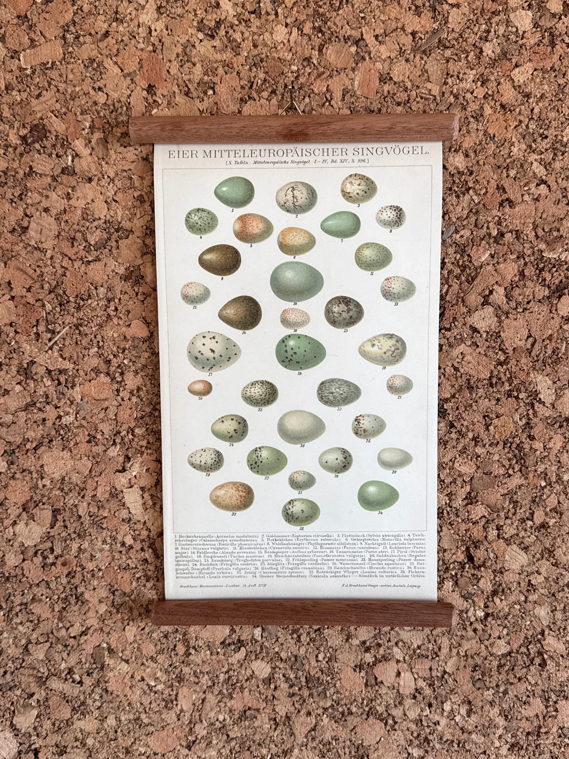 Ældre planche nænsomt frigjort fra sin oprindelige plads i leksikon, dobbeltforstærket med lærredsstof og monteret på nye mahognirundstokke.
