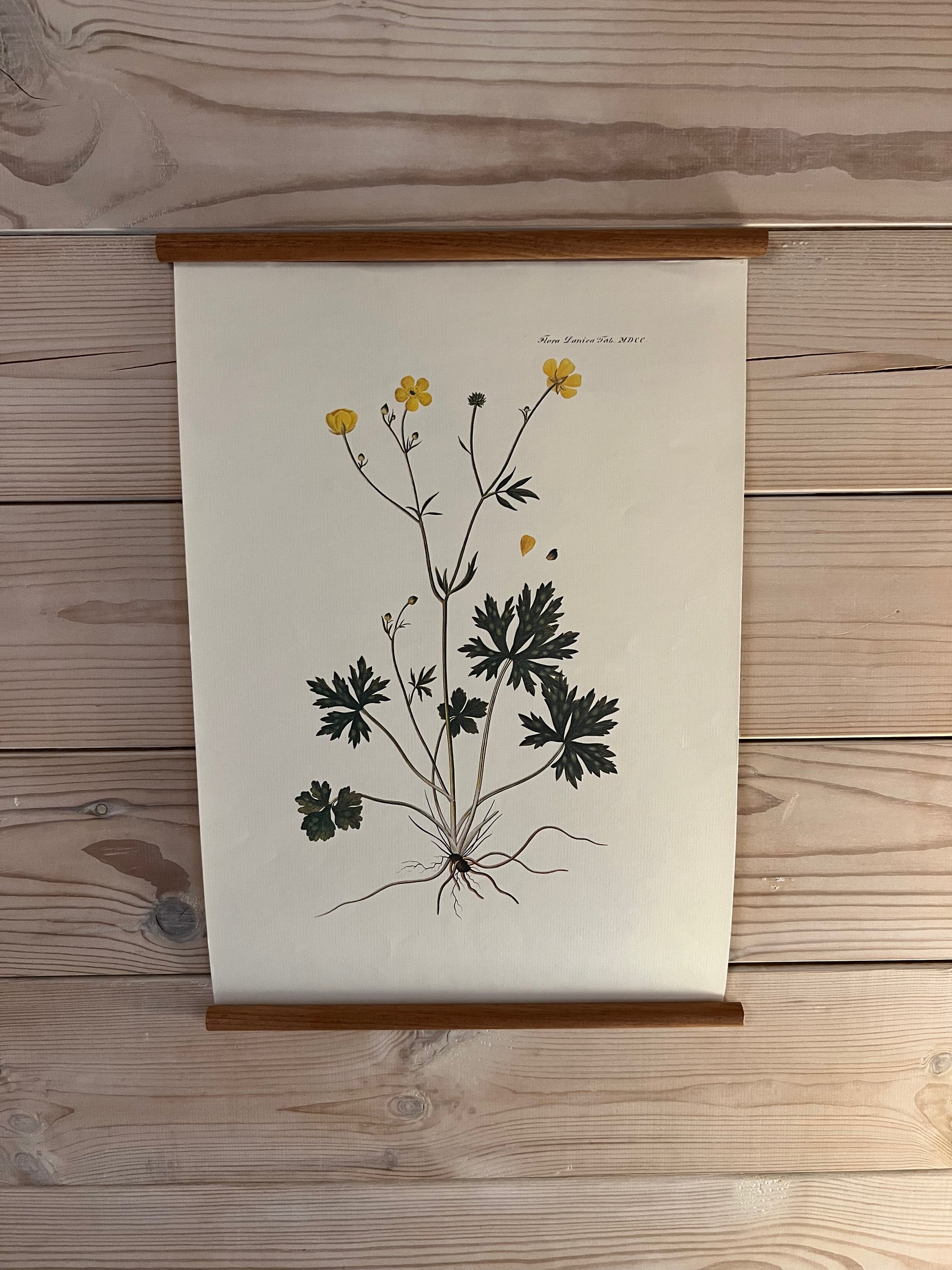 Ældre planche nænsomt frigjort fra sin oprindelige plads i portfolio, dobbeltforstærket med lærredsstof og monteret på nye mahognirundstokke.