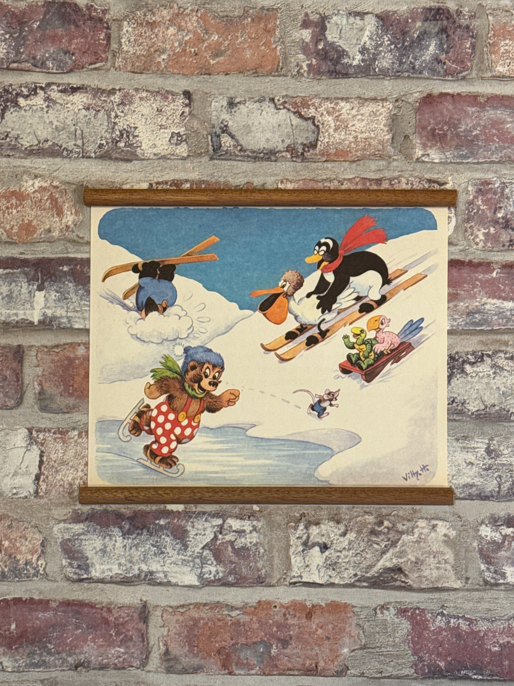 Den velkendte Rasmus Klump på fint tryk fra 70-80’erne. Nu lavet om til vægdekoration med inspiration i skolekortet, som et alternativ til indramning.