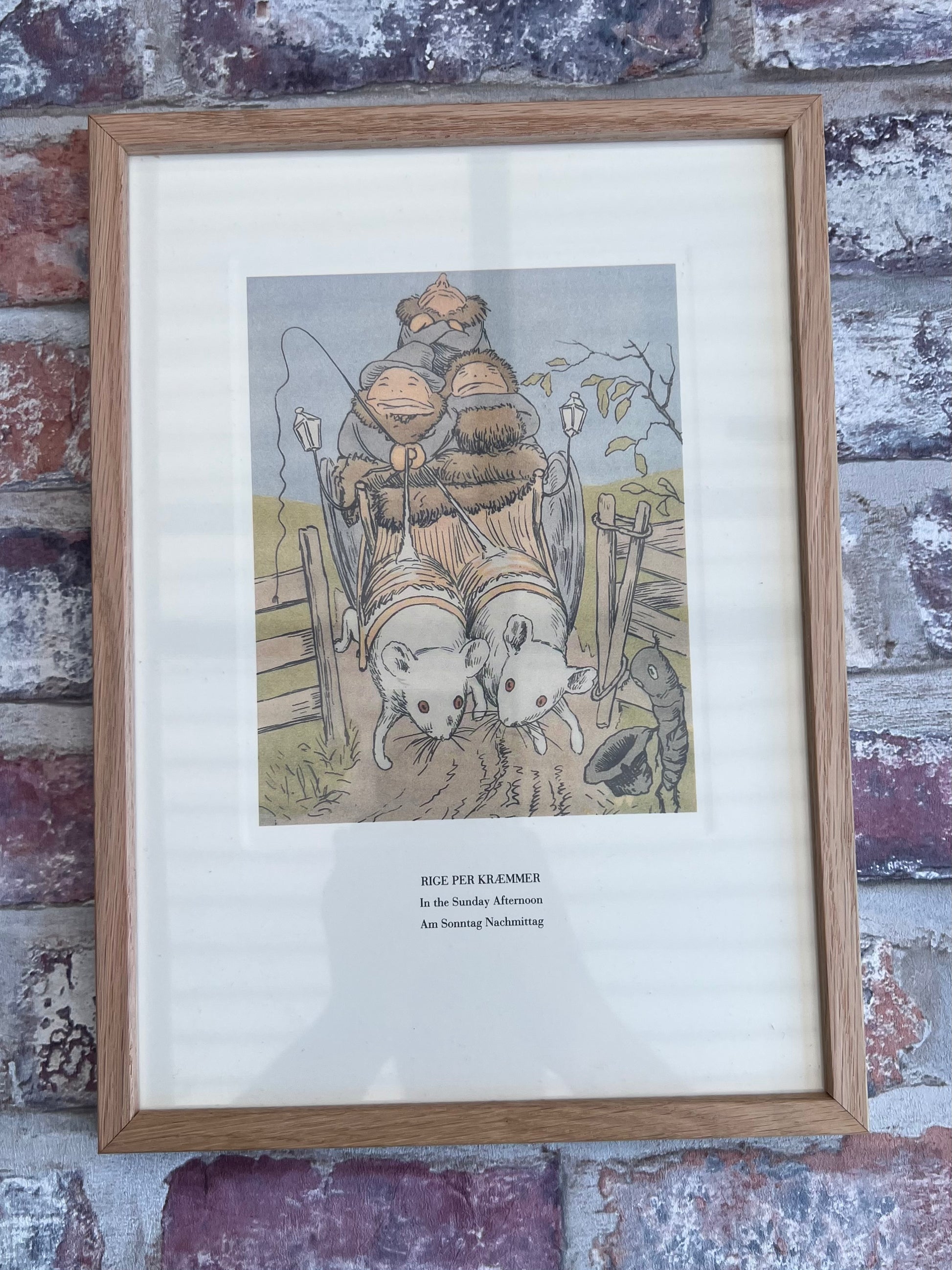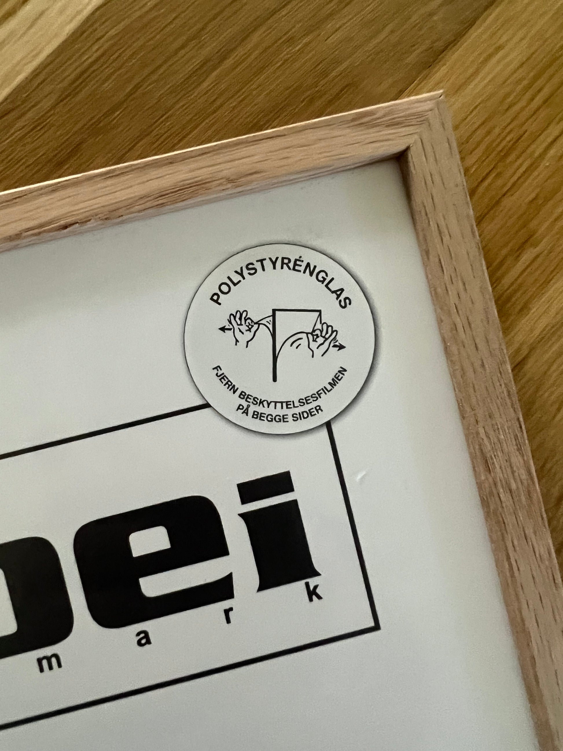 Planchen er indrammet i en massiv egetræsramme med plexiglas fra Hoei Denmark.