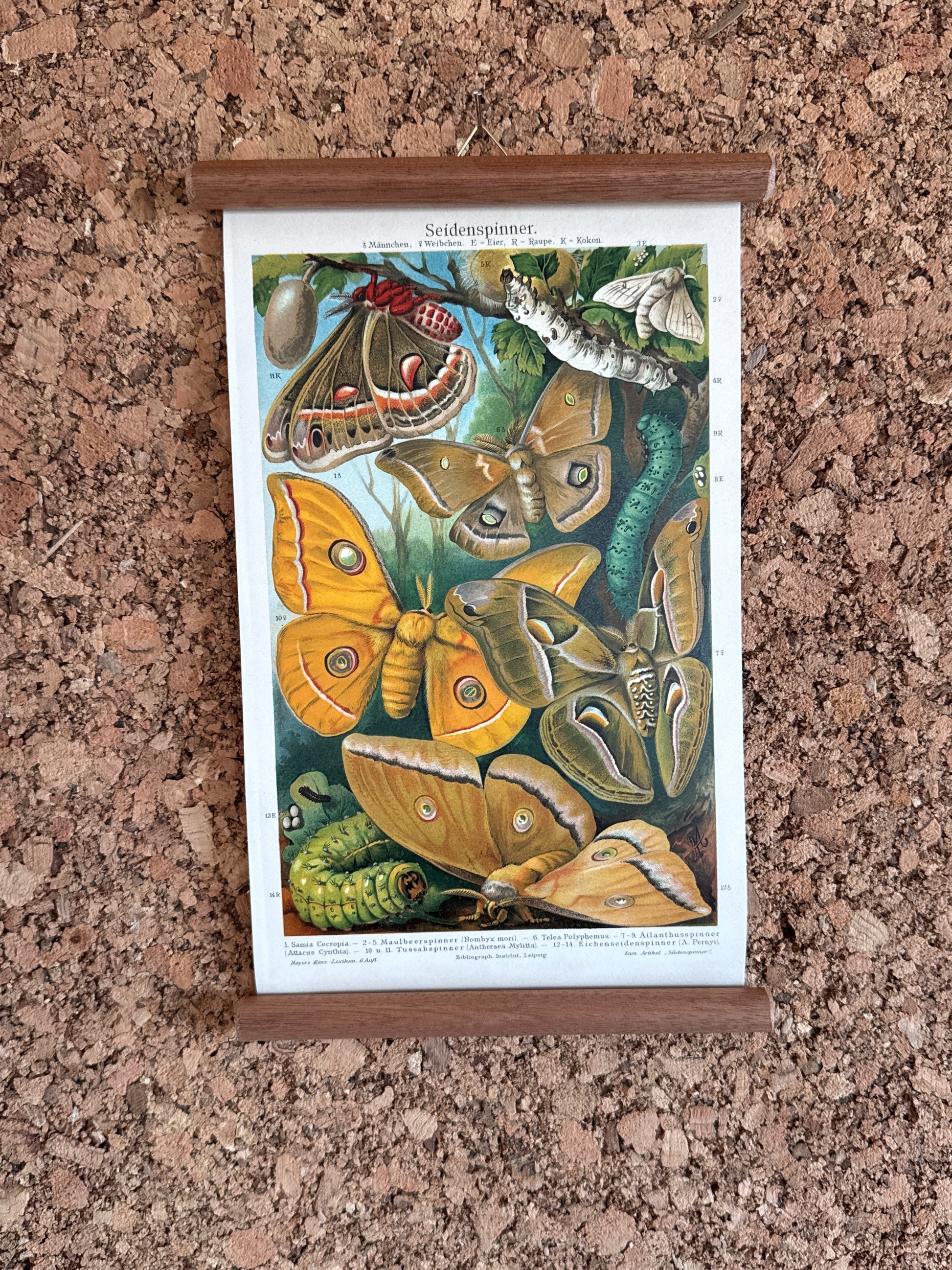 Ældre planche nænsomt frigjort fra sin oprindelige plads i leksikon, dobbeltforstærket med lærredsstof og monteret på nye mahognirundstokke.