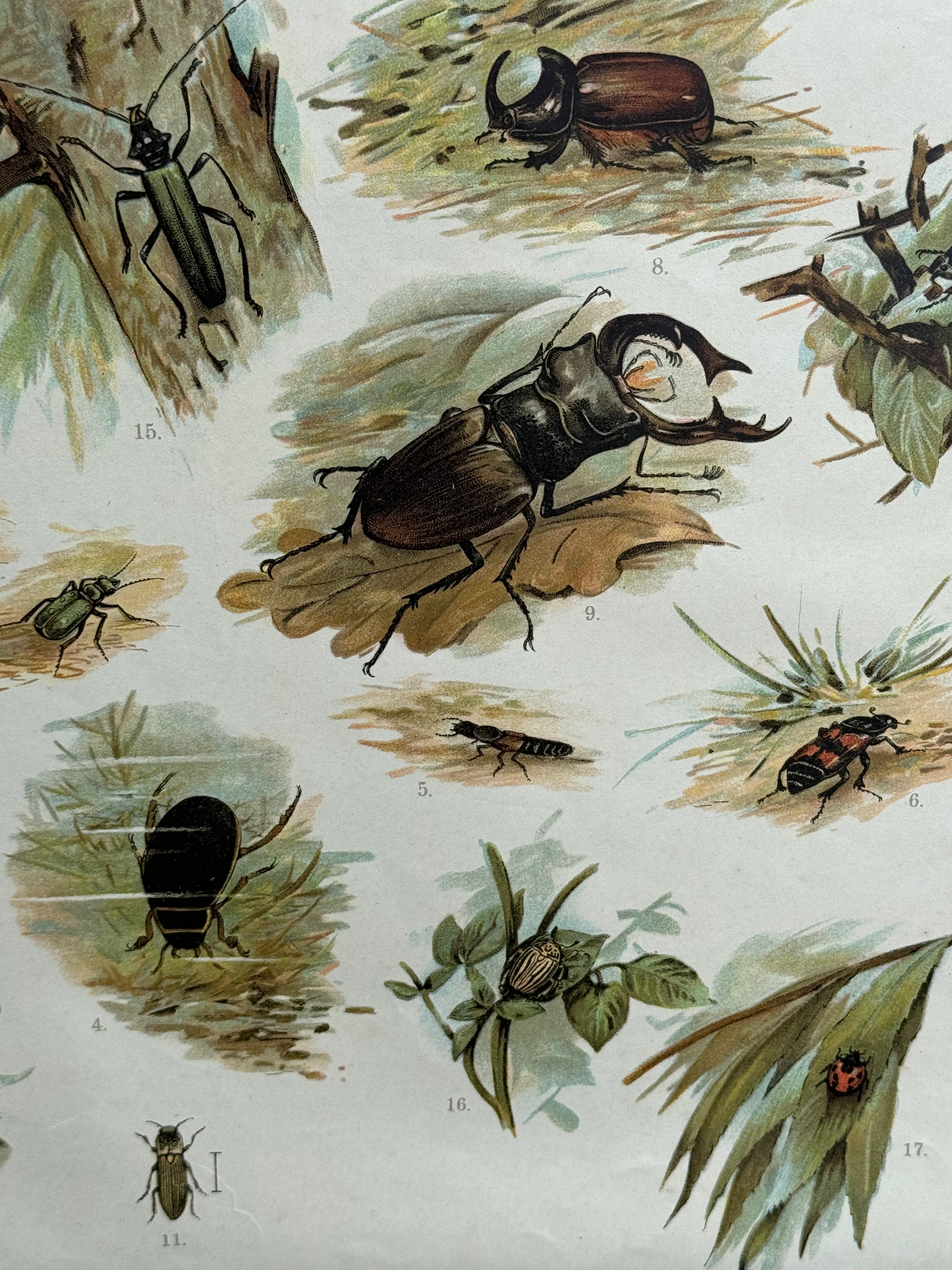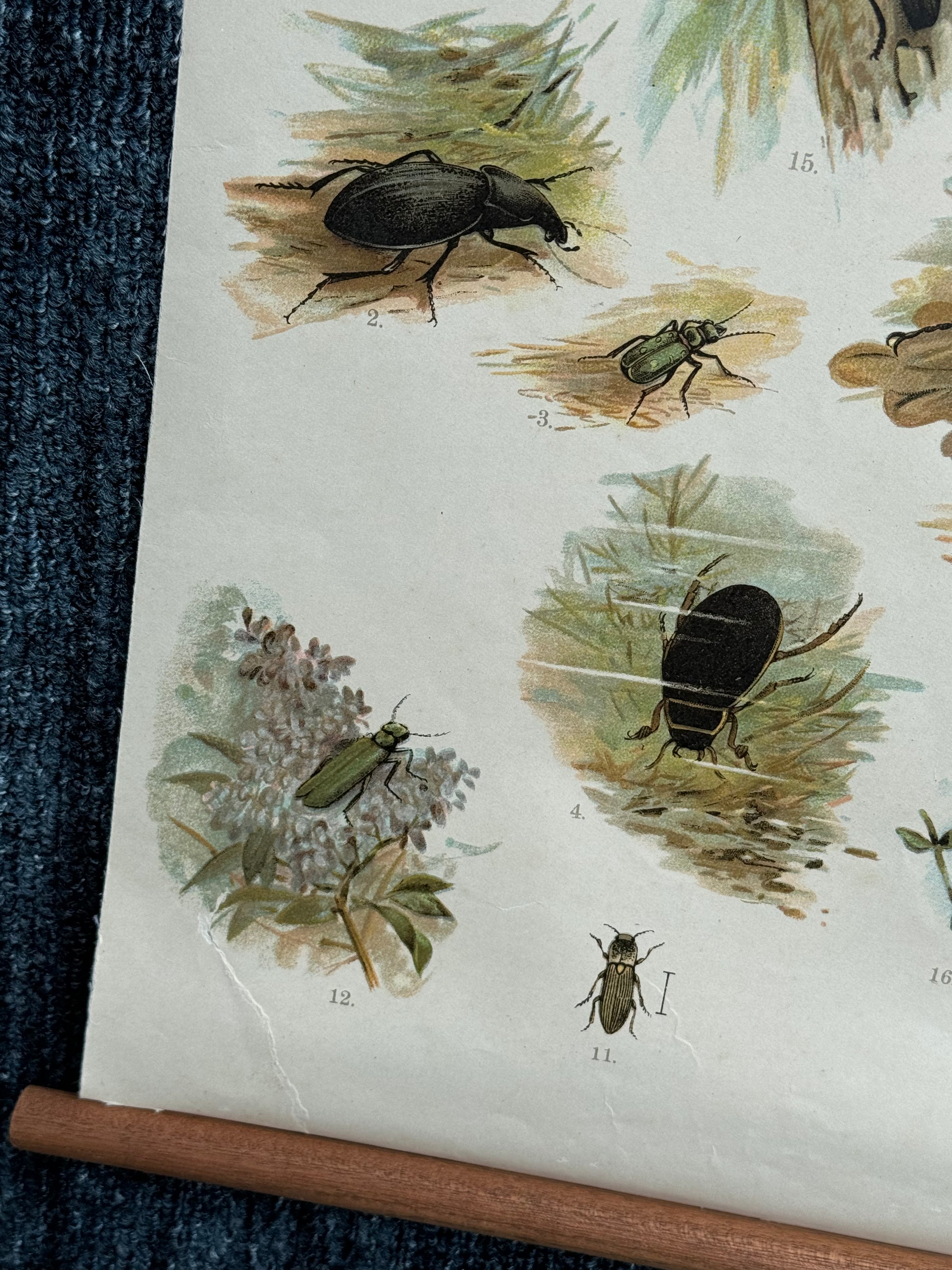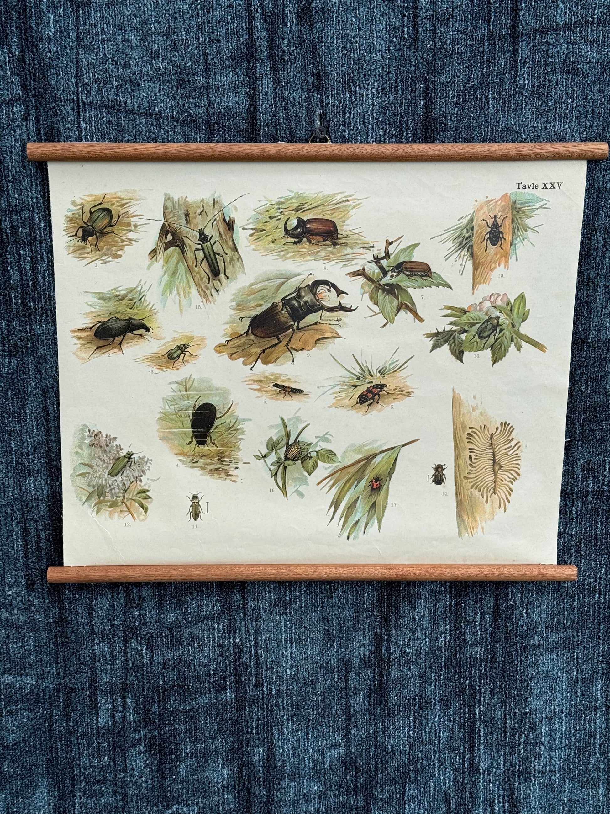 Ældre planche nænsomt frigjort fra sin oprindelige plads i album, dobbeltforstærket med lærredsstof og monteret på nye mahognirundstokke.